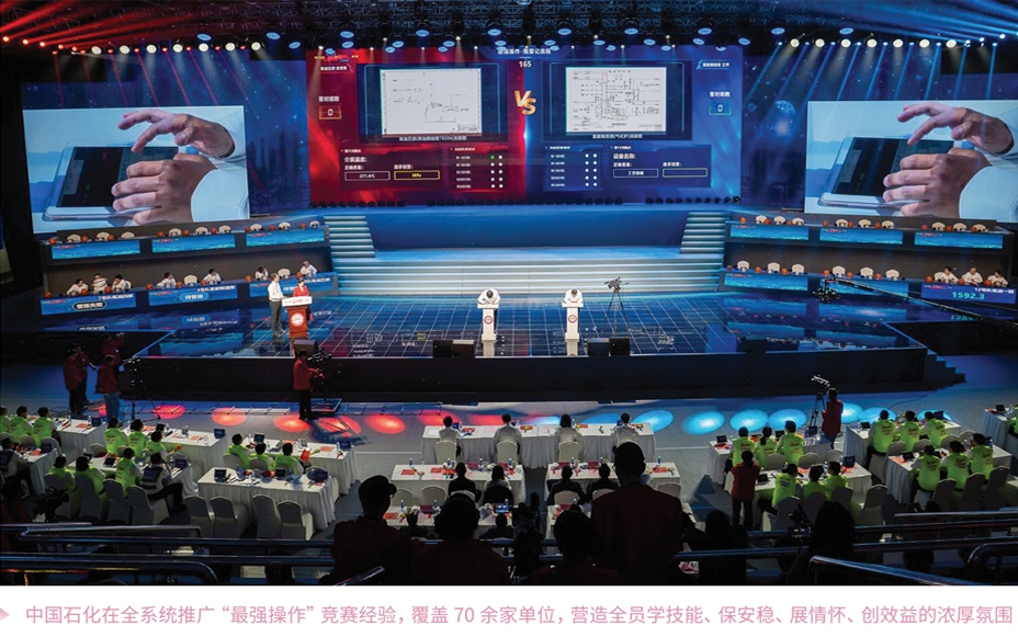 中国石化深入学习贯彻习近平总书记关于产业工人队伍建设改革的重要指示精神,强化政策联动和资源协同,推动产业工人队伍建设改革在石化系统走深走实。2024年,出台《关于贯彻落实<关于充分发挥国有企业在推进产业工人队伍建设改革中带动作用的意见>的若干措施》,明确深化产业工人队伍建设改革十项重点措施;大力弘扬劳模精神、劳动精神、工匠精神,实施“劳模工匠助企行”“劳模工匠进校园”等行动;深化劳动和技能竞赛,召开劳动竞赛推进会,包揽首届全国“红旗杯”班组长大赛化工赛道决赛3-10名;拓宽成长成才通道,开展“技能人才队伍建设提升年”活动,建立完整的技能人才工作制度体系。广大石化产业工人牢记嘱托、砥砺奋进,积极投身推动公司高质量发展的火热实践,奋力谱写中国式现代化石化新篇章。